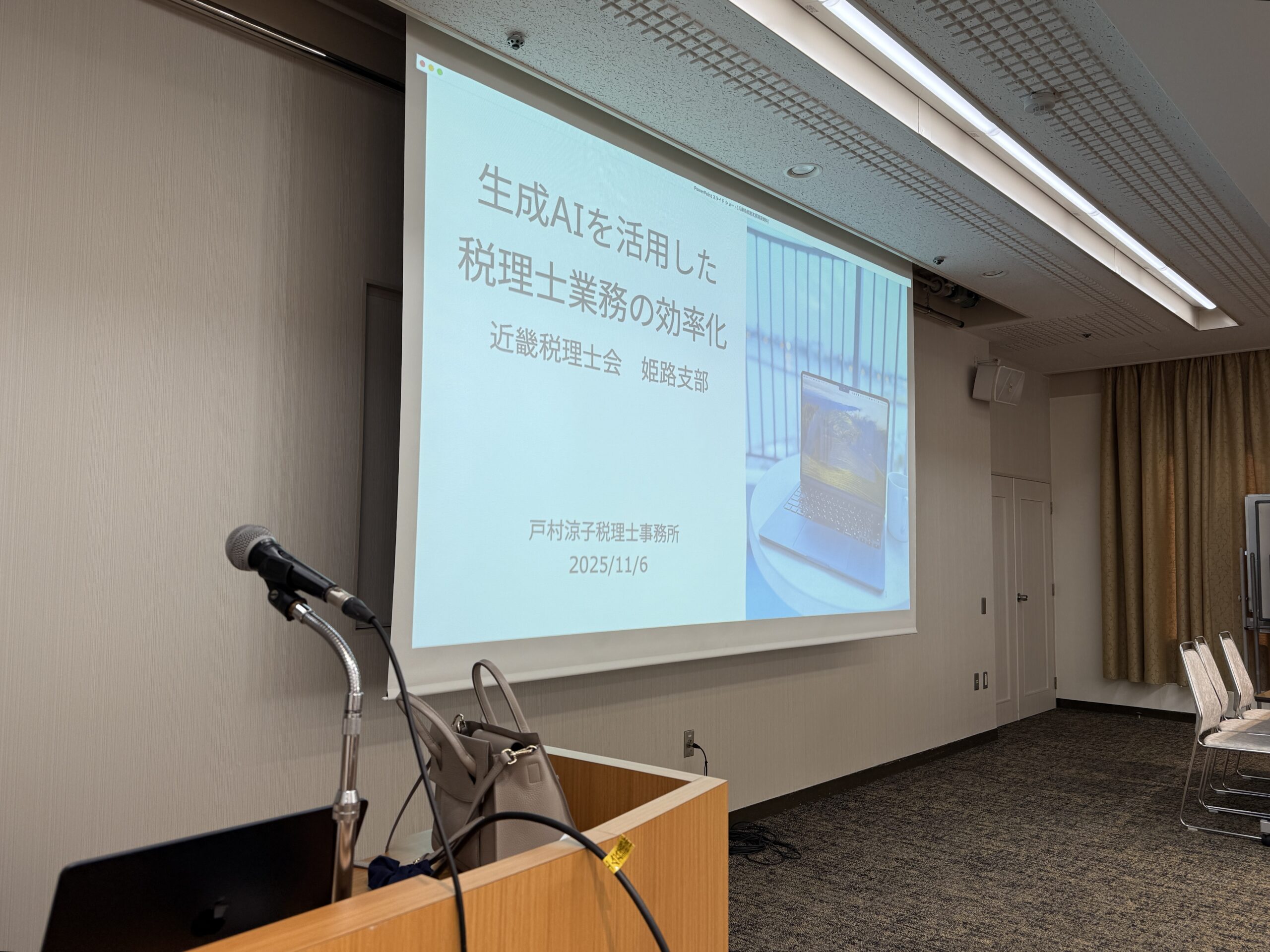 2025年11月6日、近畿税理士会姫路支部様にて「生成AIを活用した 税理士業務の効率化」のテーマで講演をさせていただきました。